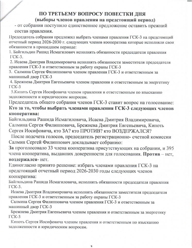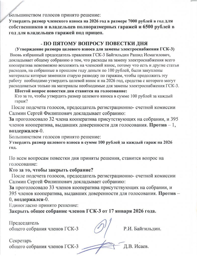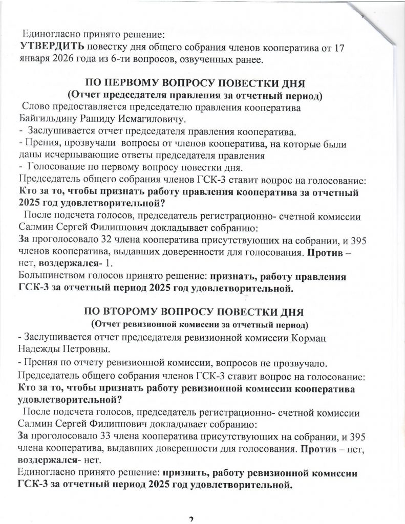 Протокол общего собрания членов ГСК-3 от 17.01.2026г.